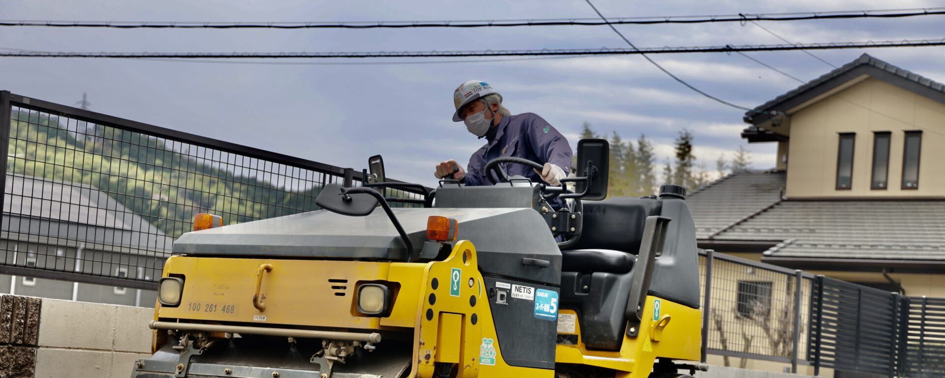 駐車場や駐輪スペースをはじめ、私有地の道路舗装もお任せください。 大型重機を使用しての広範囲の工事も対応しております。